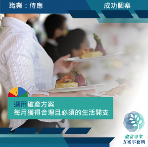 最終接納方案經理之破產方案協助客人爭取最高12,500元生活開支