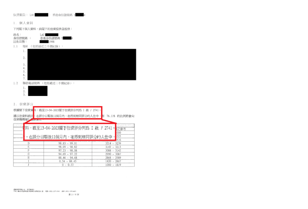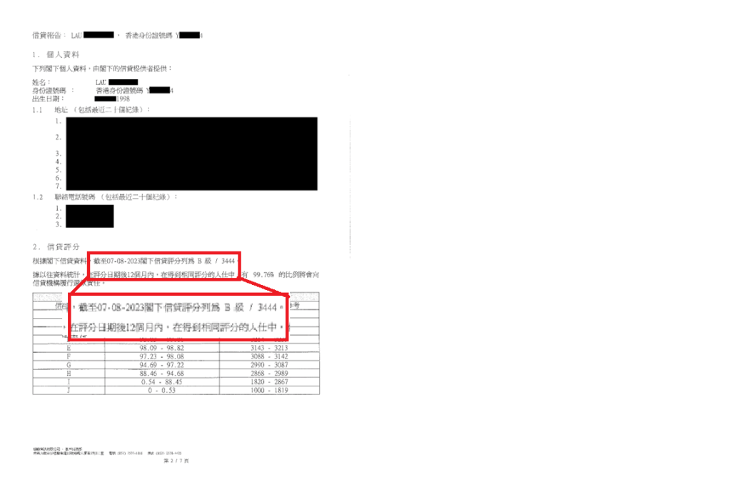 其後待TU 評分上升後,客人從2間銀行獲得貸款