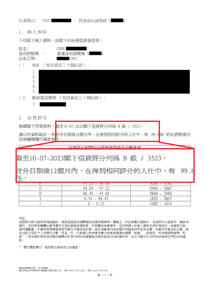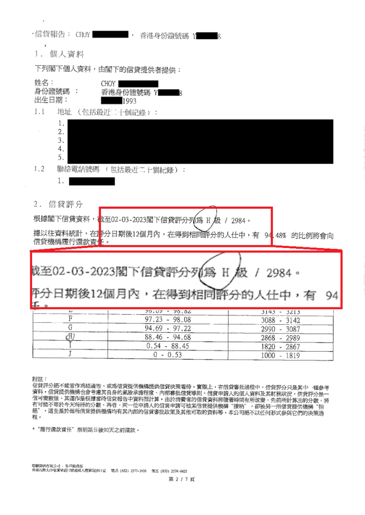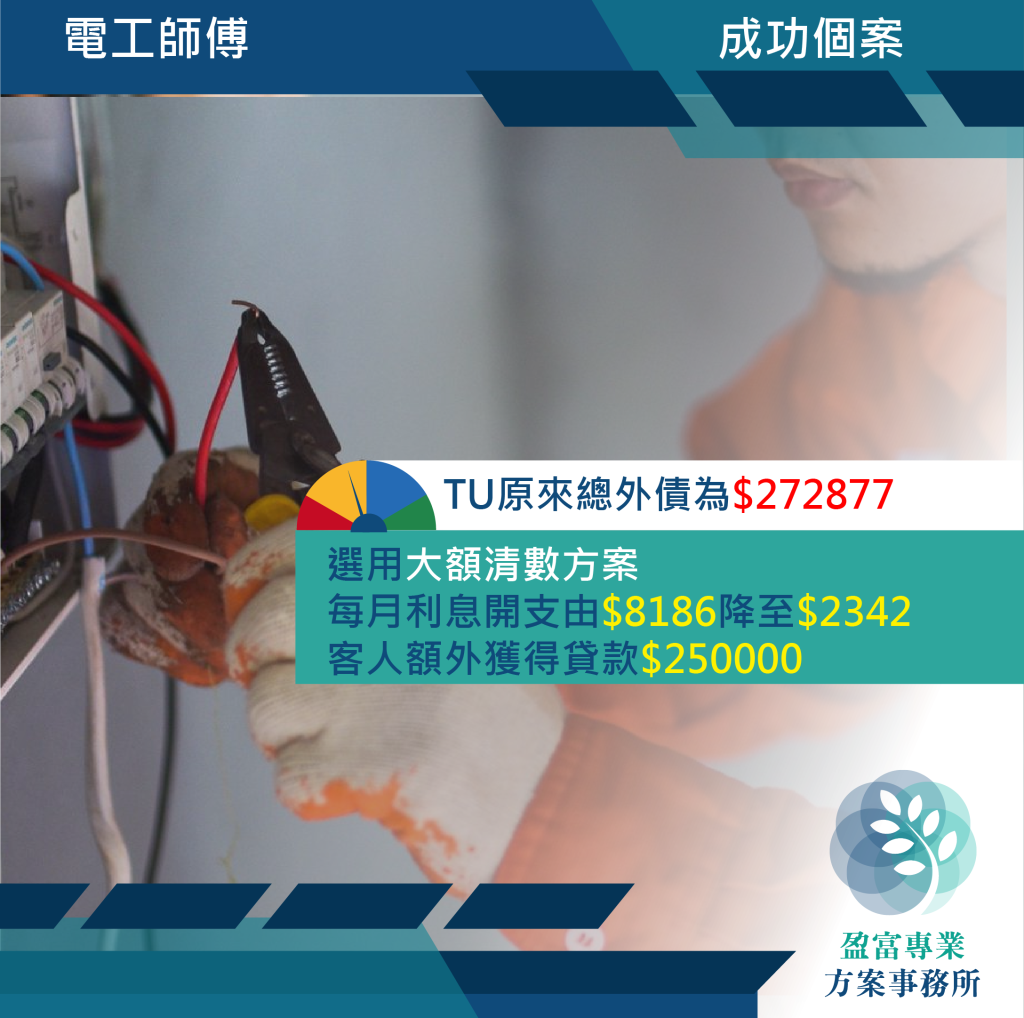 其後待TU 評分上升後,客人從2間銀行獲得貸款